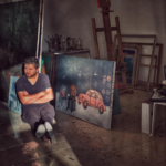 Aujourd’hui, Ali poursuit activement sa pratique artistique en produisant des œuvres plastiques et des scénographies théâtrales, tout en transmettant son savoir et sa passion pour l’art. Dans son studio, installé chez lui, il forme des enfants, des jeunes et des adultes, et partage avec eux une approche sensible et engagée de la création. Parallèlement, il continue à participer à des expositions dès que l’occasion se présente. Son travail actuel s’inscrit dans une réflexion autour de la théâtralisation de la réalité, cherchant à introduire davantage le langage du théâtre dans l’œuvre picturale, afin que la peinture soit appréhendée comme une scène, au plus proche du monde théâtral.