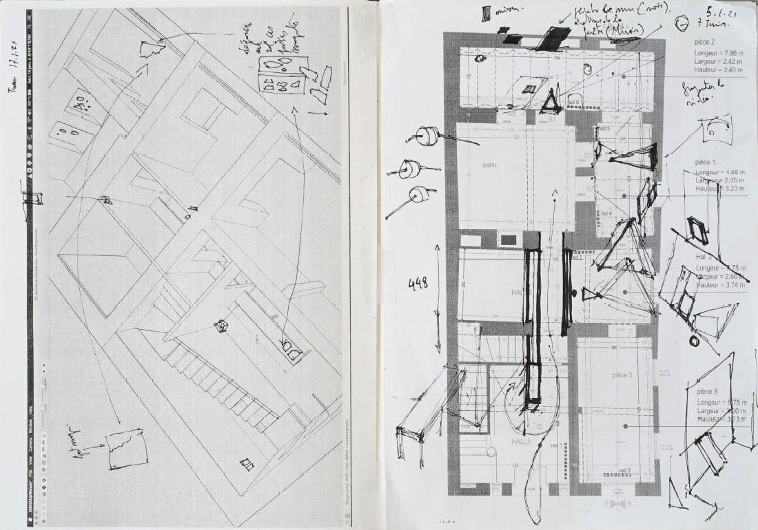L’artiste rejoint le sculpteur suisse Alberto Giacometti qui juge que l’espace n’existe pas mais se crée et se construit. Ismaïl a repensé l’espace originel et n’a même pas hésité à condamner des salles, rouvrir une fenêtre cachée pour la recouvrir avec un papier calque translucide qui laisse passer le