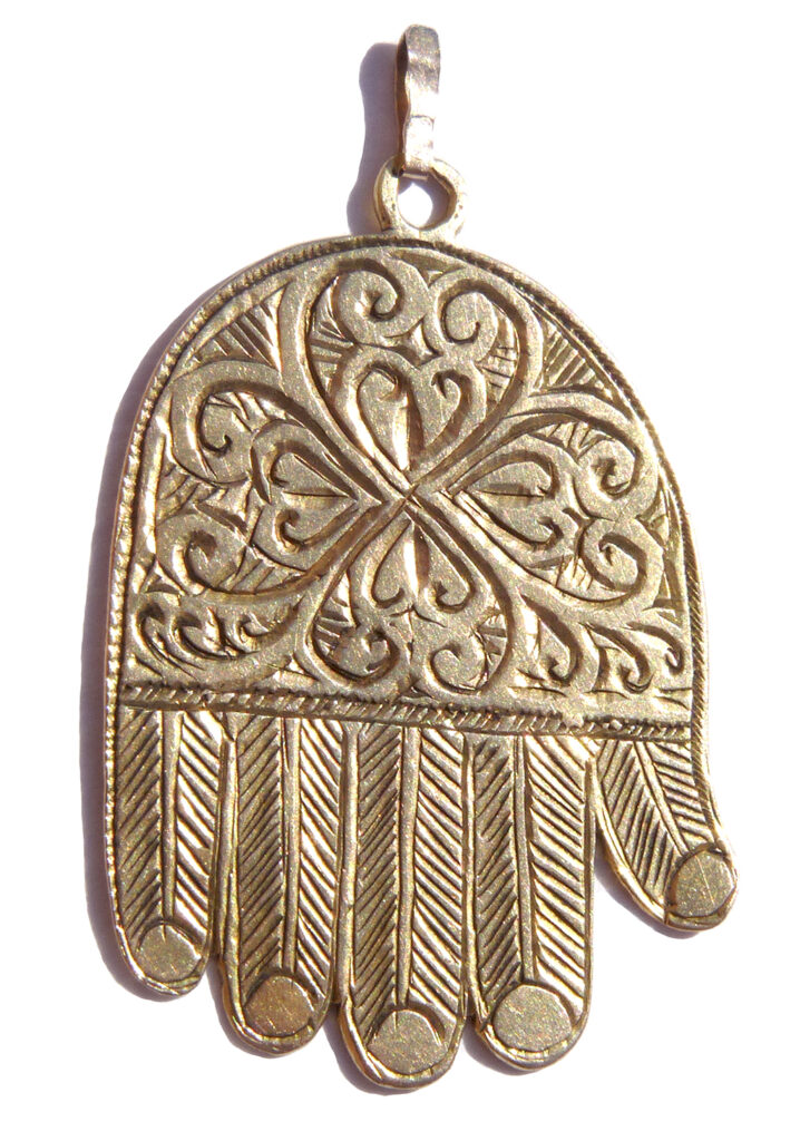 On l’a voulu islamique parce qu’on lui adjoint souvent le nom de Fatma, la fille du prophète. On la réclame judaïque, parce que, appliquée sur les maisons juive d’Egypte, elle a sauvé les enfants de Moïse des exactions du pharaon. On la prétend même d’origine indienne, et certaines tribulations de l’histoire font qu’on en a retrouvé trace dans certains pays d’Amérique latine.
