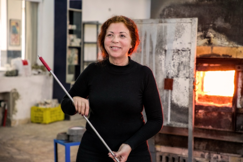 Formée à l’École des Beaux-Arts de Tunis puis à l’École du verre de Murano, Sadika Keskes incarne une génération d’artistes qui puisent dans les savoir-faire traditionnels pour mieux les réinventer. Depuis l’ouverture de son atelier en 1984, elle n’a cessé d’explorer les potentialités du verre, tout en menant des recherches sur ses origines, notamment à travers la reconstitution de techniques de verrerie punique.