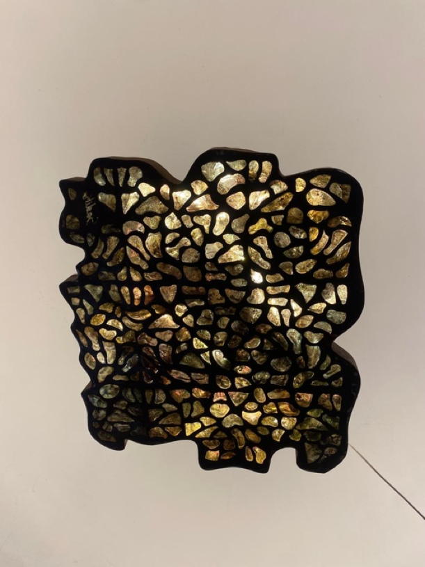 Au cœur de cette résidence, Sadika Keskes réalise une œuvre intitulée Abstraction, un vitrail tridimensionnel de 50 x 100 cm, qui repousse les limites de ce médium ancestral. Loin du vitrail traditionnel, cette création s’inscrit dans une recherche plastique et technique audacieuse, où le verre devient matière vivante, en mouvement, presque organique.